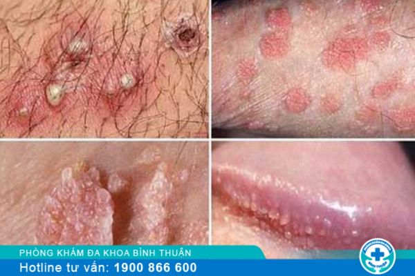 + Sùi mào gà: Biểu hiện là các nốt mụn thịt nhỏ li ti, mọc đơn lẻ; sau đó phát triển to và dày đặc hơn, liên kết với nhau thành cụm có dạng mào gà, bông súp lơ.