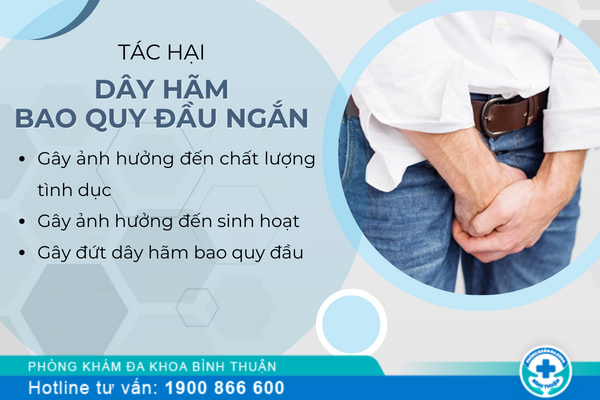 Gây ảnh hưởng đến sinh hoạt: Việc dây hãm bao quy đầu bị ngắn có thể khiến cho việc tiểu tiện của nam giới gặp khó khăn. Thêm vào đó đi kèm với tình trạng hẹp hoặc dài bao quy đầu có thể gây ra tình trạng viêm nhiễm nam khoa do nếu không được vệ sinh sạch sẽ.