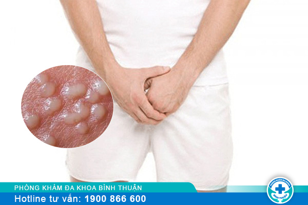 + Nam giới bị tiểu buốt, đau rát khi tiểu; bong tróc da dương vật, phồng rộp và lở loét.