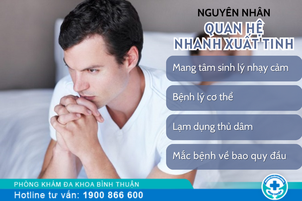 Dựa trên thông tin do bác sĩ chuyên điều trị bệnh nam khoa tại Phòng Khám Nam Khoa Bình Thuận cho biết: Xuất tinh sớm ngày càng tăng nhanh trong xã hội hiện nay do nhiều nguyên nhân gây ra, bao gồm bệnh lý và tác nhân từ bên ngoài. Những điều này khiến nam giới đứng trước nhiều rủi ro về sức khỏe, ảnh hưởng nghiêm trọng đến chức năng sinh lý ở nam giới.